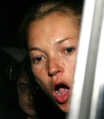 We're used to seeing pictures of Pete Doherty looking greasy, spotty and off his head. But his girlfriend Kate Moss usually keeps a look of supermodel serenity about her.